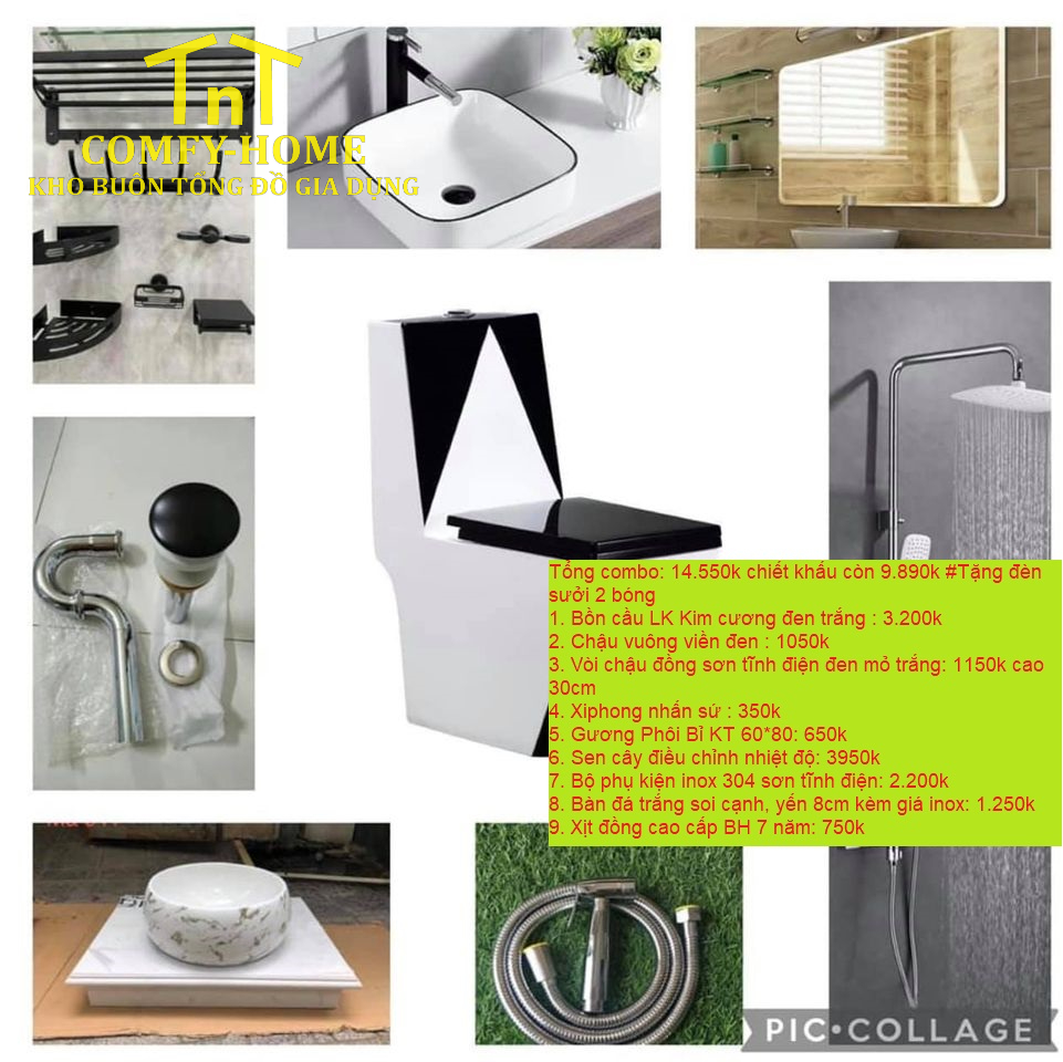 Combo thiết bị phòng tắm cao cấp COMFY-HOME là giải pháp trọn gói – đồng bộ – thẩm mỹ cao, phù hợp cho nhà ở, chung cư, khách sạn, homestay và các công trình hiện đại. Sản phẩm được tuyển chọn kỹ lưỡng từ chất liệu cao cấp, thiết kế tinh tế, đảm bảo độ bền – công năng – giá trị sử dụng lâu dài.