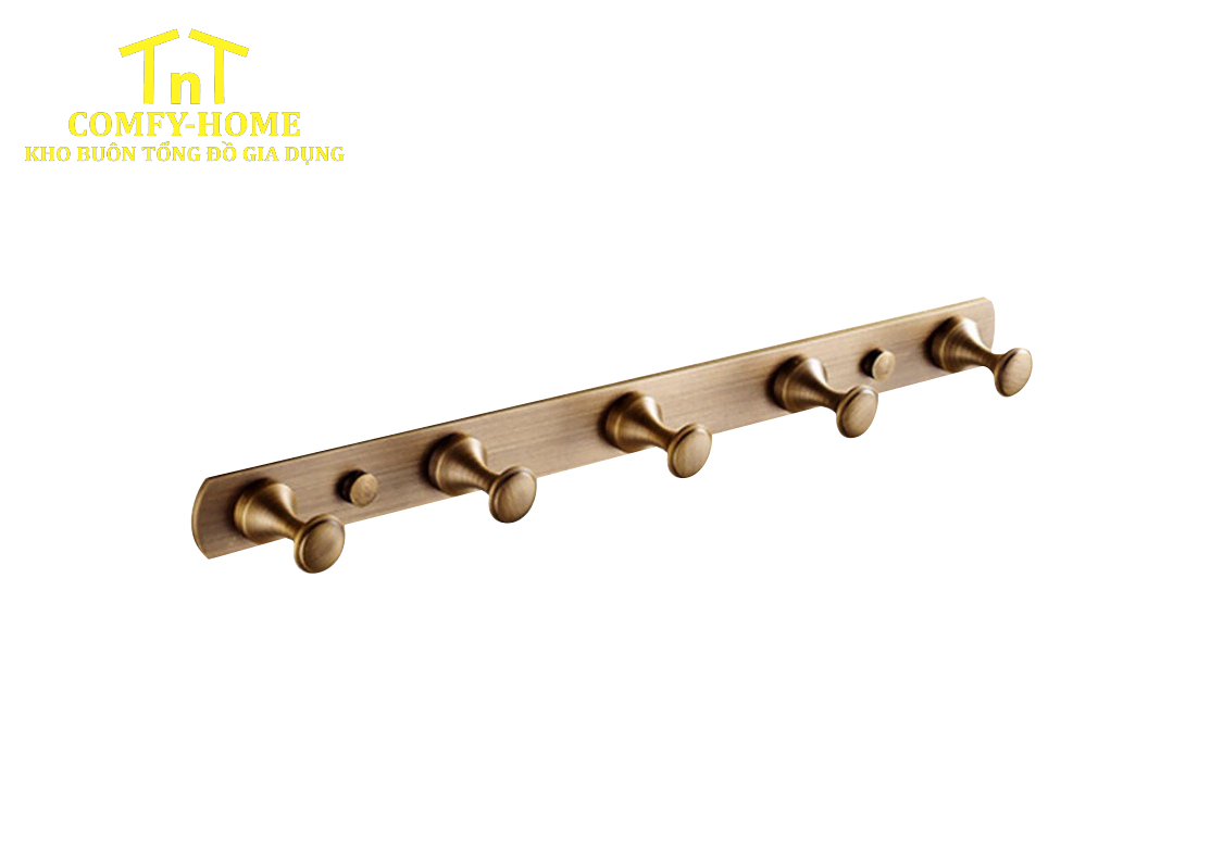 Móc treo tường hợp kim màu đồng cổ 5 móc – Phong cách vintage cao cấp